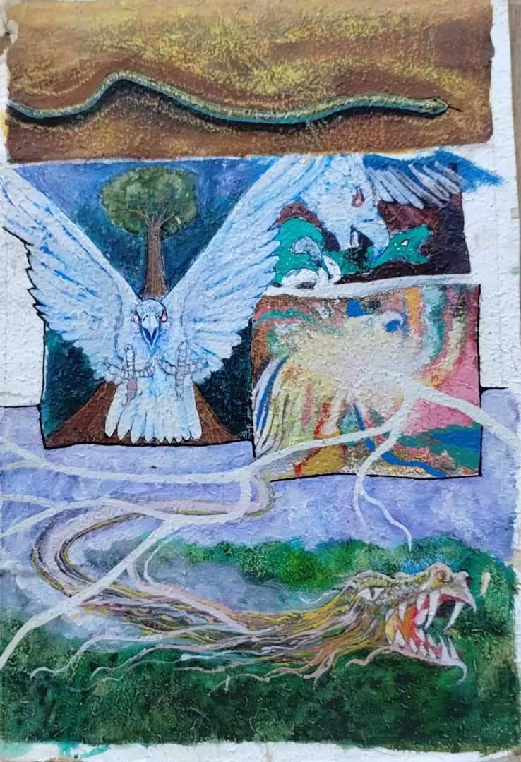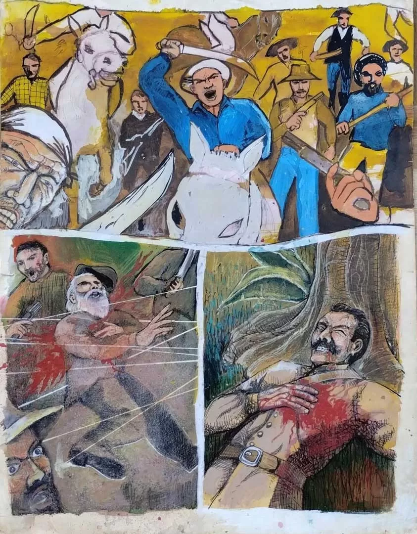É assim que a analogia entre o dragão celeste chinês e a serpente emplumada das civilizações pré-colombianas vai se repetindo em suas narrativas visuais, desde a revista Mitacoré de 1993 até os trabalhos mais recentes. Os esboços relativos a “Gonzalo de Marvisante”, no que parece ser apenas um projeto inconcluso são, na realidade, um tema que se desdobra em múltiplas narrativas em diferentes tempos e linguagens. “Candinho, uma saga” foi livro, fanzine, novela de rádio e trabalhos acadêmicos. A profundidade da pesquisa e a enormidade de trabalho plástico e literário já realizados para o projeto “Chuva e Barro” uma graphic novel projetada para as comemorações dos 60 anos de Londrina que não foi concretizada à época, certamente merecem estudos e continuidade.