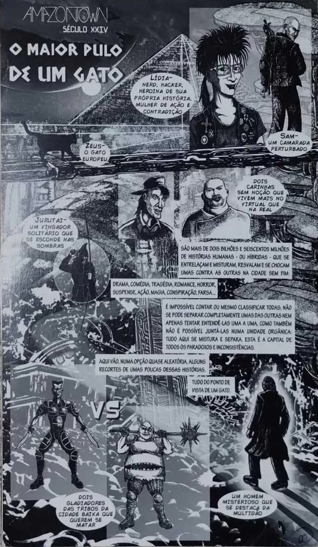 Narrativa distópica & profética, na fronteira do delírio, em que desnascidos e incriados confrontam-se no espaço virtual. Protagonizada por Samuel Spada, Lídia e Catman. Argumento e linguagem vertiginosos, esboços detalhados , glossário de “palavralises”, a saber: